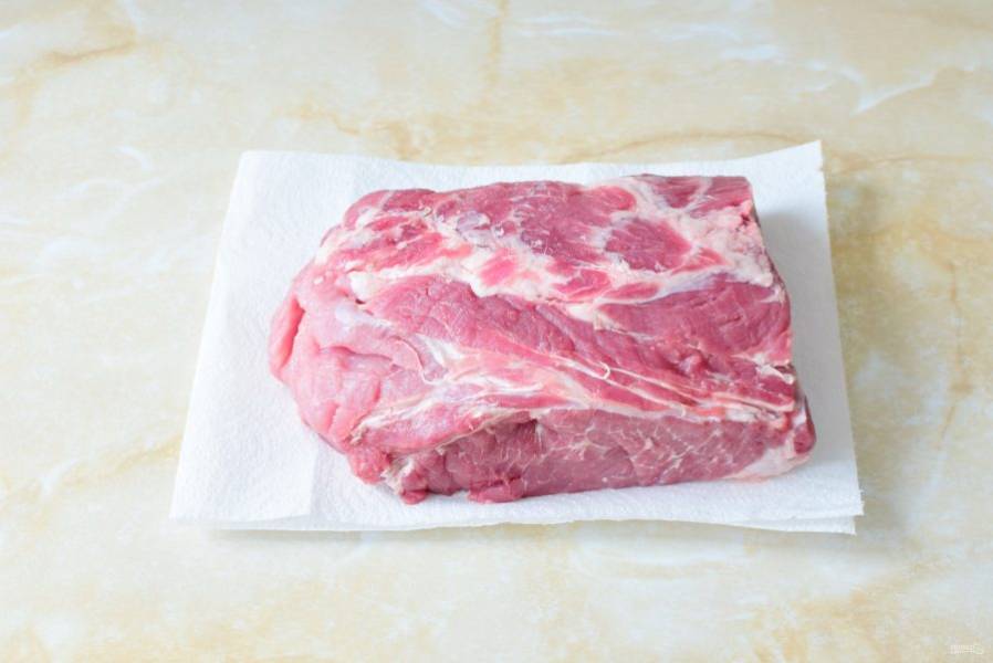 Мясо промойте в проточной воде и обсушите бумажными полотенцами.