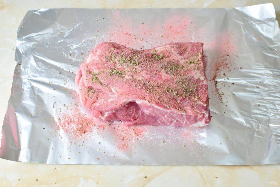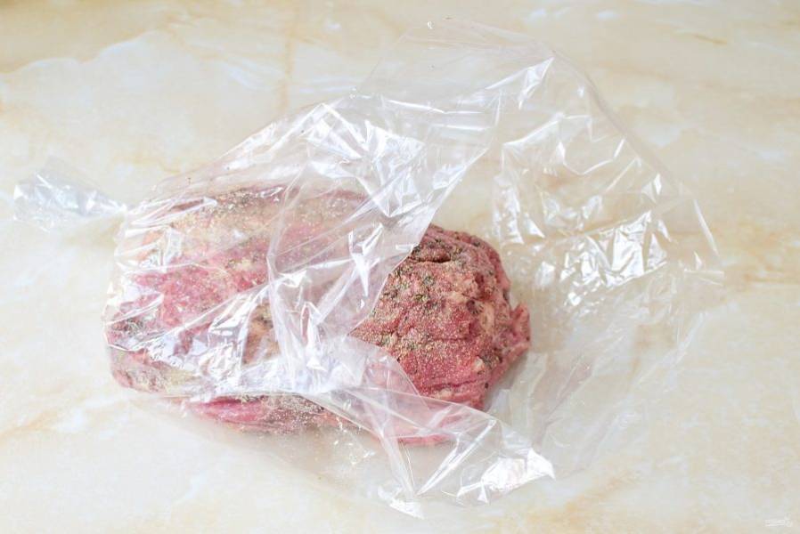 Обмажьте мясо со всех сторон растительным маслом и выложите в пакет для запекания.