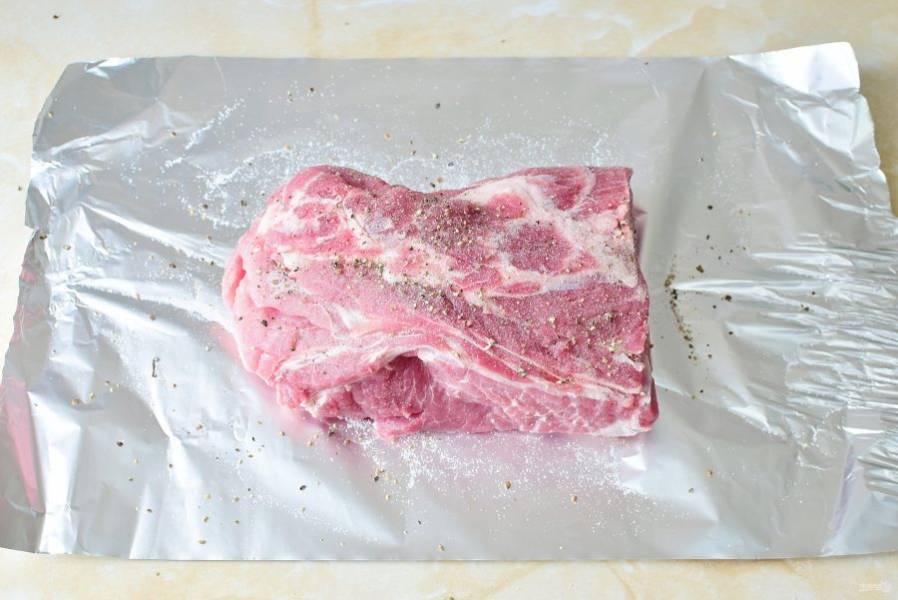 Обсыпьте мясо солью и молотым перцем.