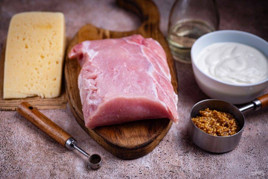 Все ингредиенты перед вами на фото. Кусок свинины ополосните в холодной воде и просушите бумажными полотенцами.