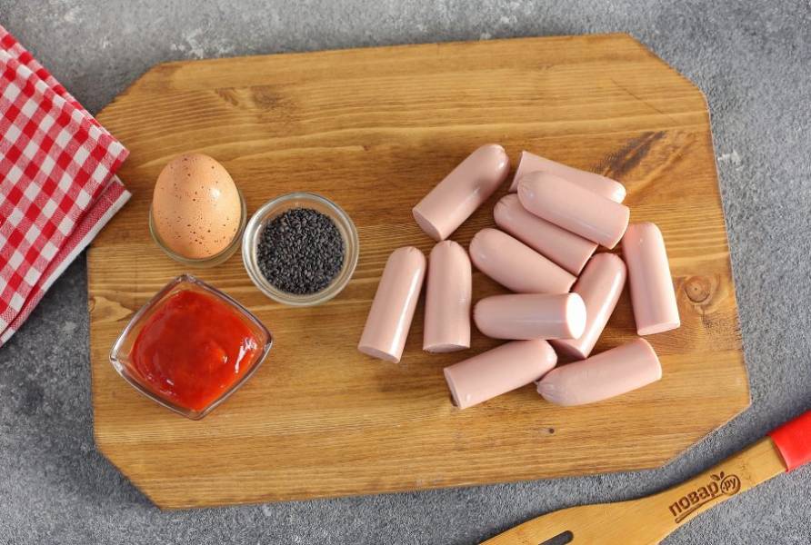 Если у вас сосиски крупные как у меня, то разрежьте их пополам.