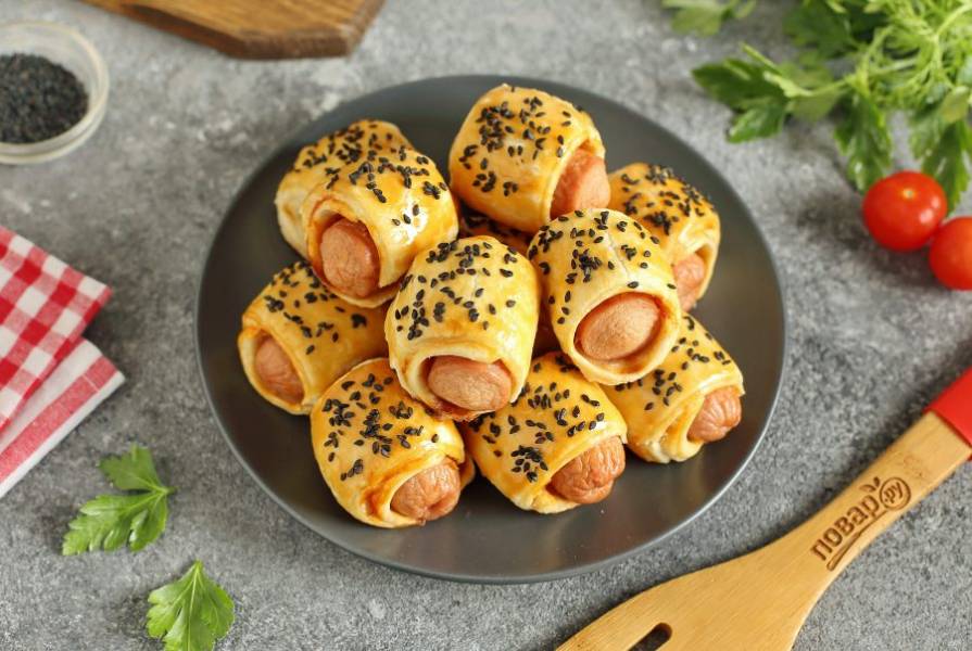 Быстрая и очень вкусная закуска на скорую руку. "Свинки в одеяле" — американская версия наших любимых сосисок в тесте. Берите на заметку рецепт!
