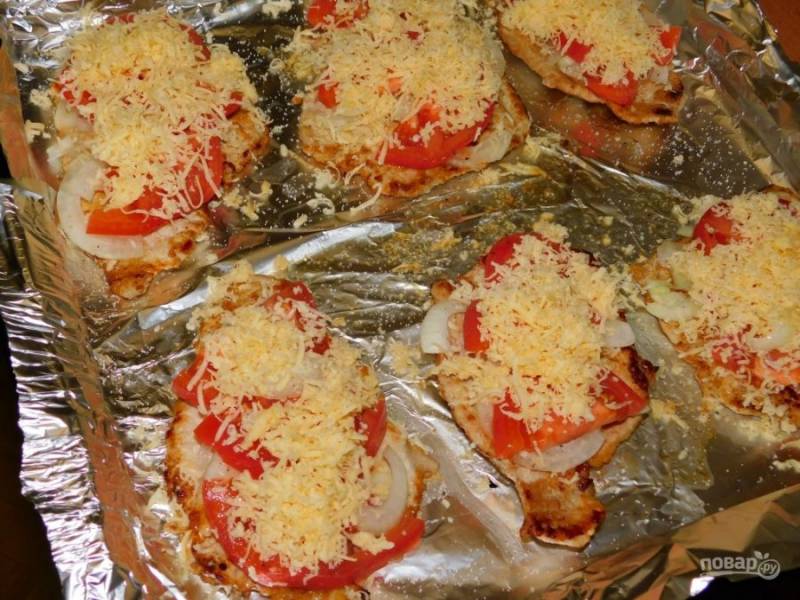 Стейки из свинины с сыром и помидорами в духовке