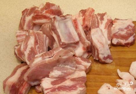 Свиные ребра порубите, помойте, а при необходимости – порежьте.