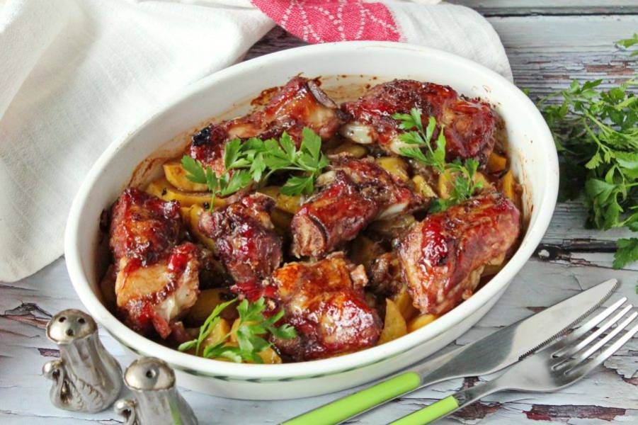 Свиные ребра в соево-медовом соусе запеченные с картошкой