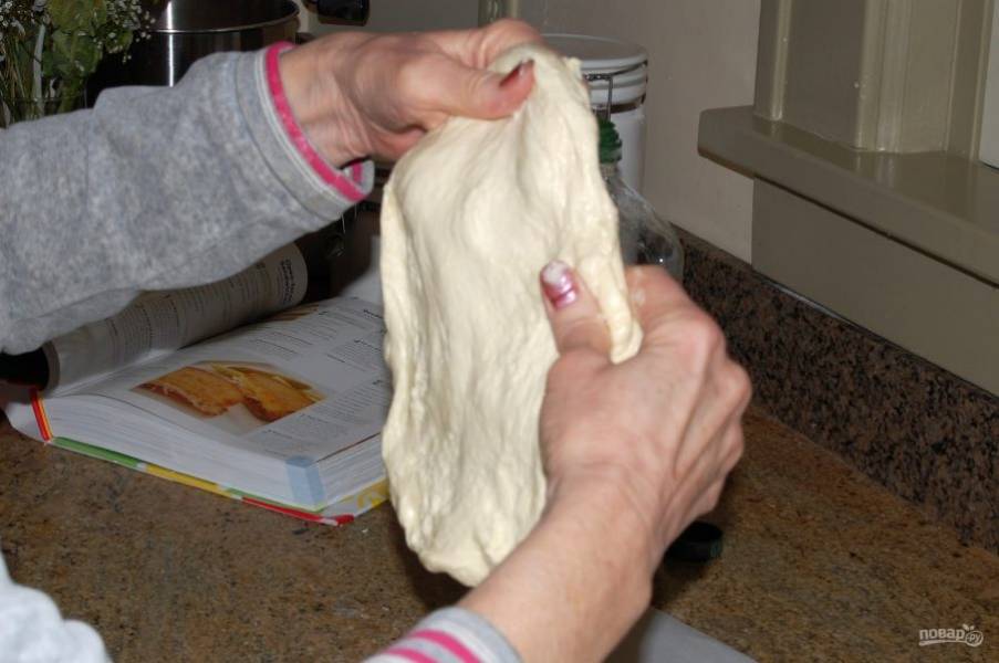 1. В миску просейте муку, добавьте соль и дрожжи, влейте воду и растительное масло, замесите тесто и оставьте его на 10 минут, затем переложите в миску, накройте полотенцем и оставьте на 1-2 часа.