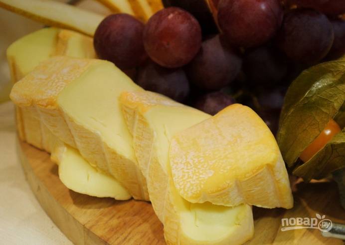 Лимбургер также нарежьте пластинками. Его главное отличие — плотная пряная корочка с терпким и резким ароматом.