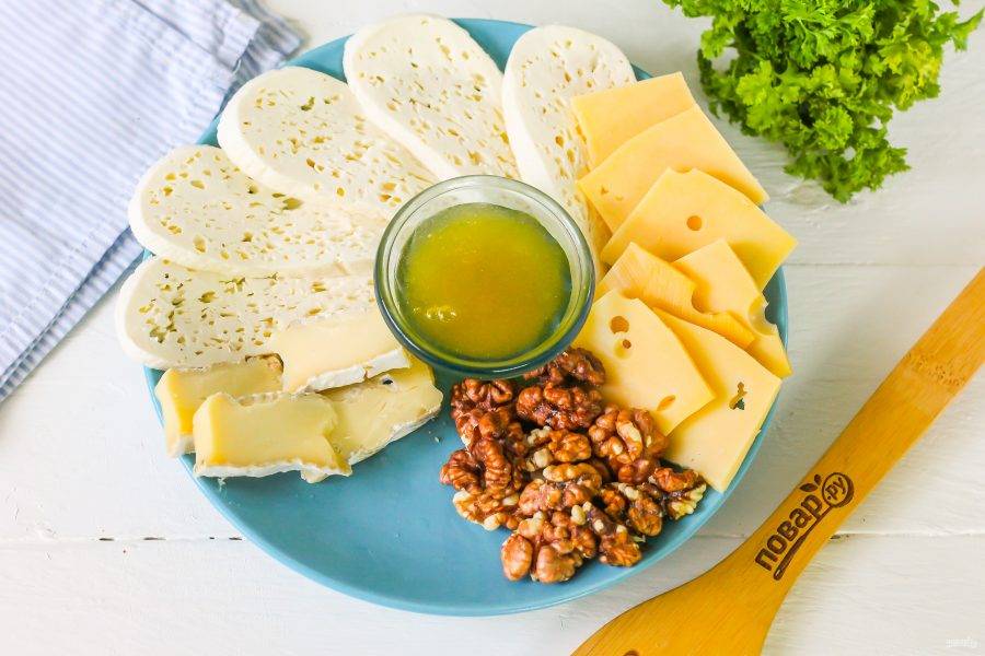 Подготовьте указанные ингредиенты. Приобретите три-четыре разных сорта сыра.