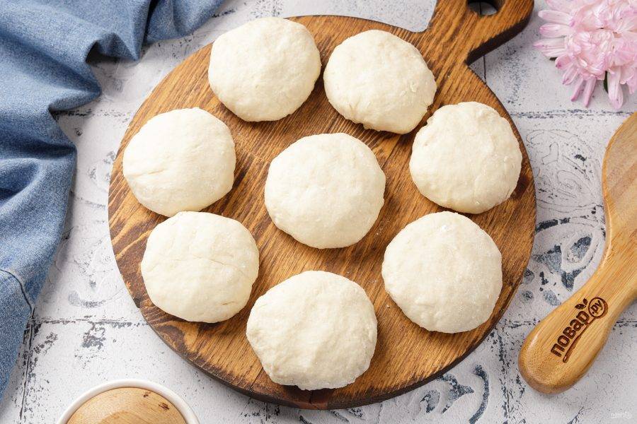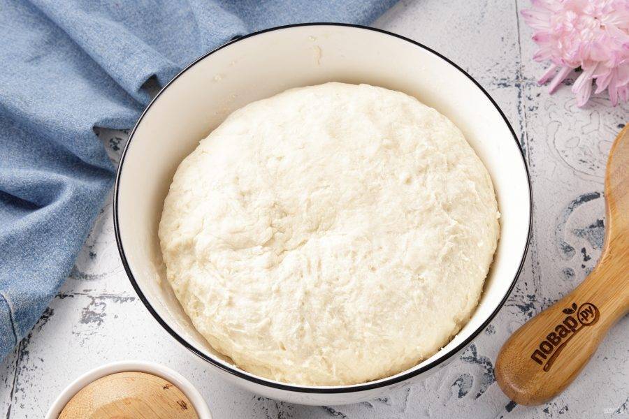 Соберите тесто в шар, припылите мукой и дайте полежать 1 час в тёплом месте.
