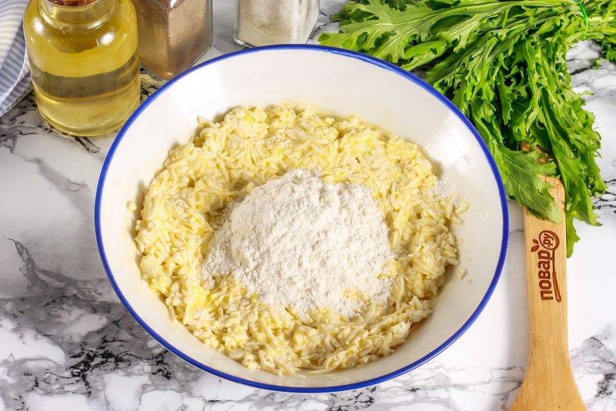 Смочите ладони в воде и сформируйте из сырного теста небольшие котлетки. Обпанируйте их в оставшейся муке со всех сторон.