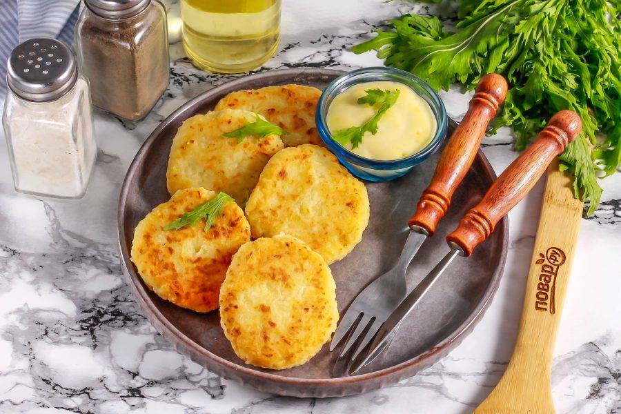 Выложите румяные сырники на тарелку и подайте их к столу горячими.