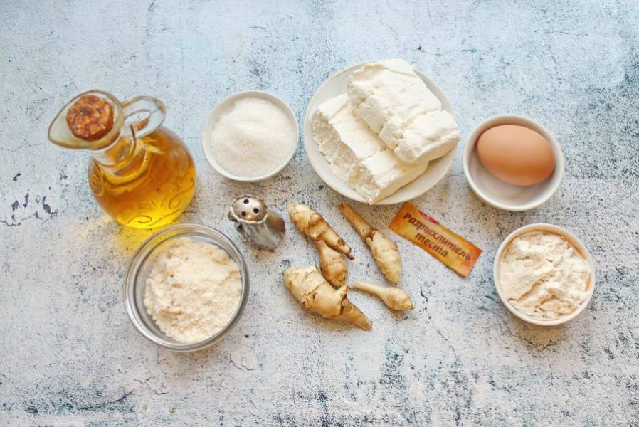 Подготовьте все необходимые ингредиенты для приготовления сырников с топинамбуром.