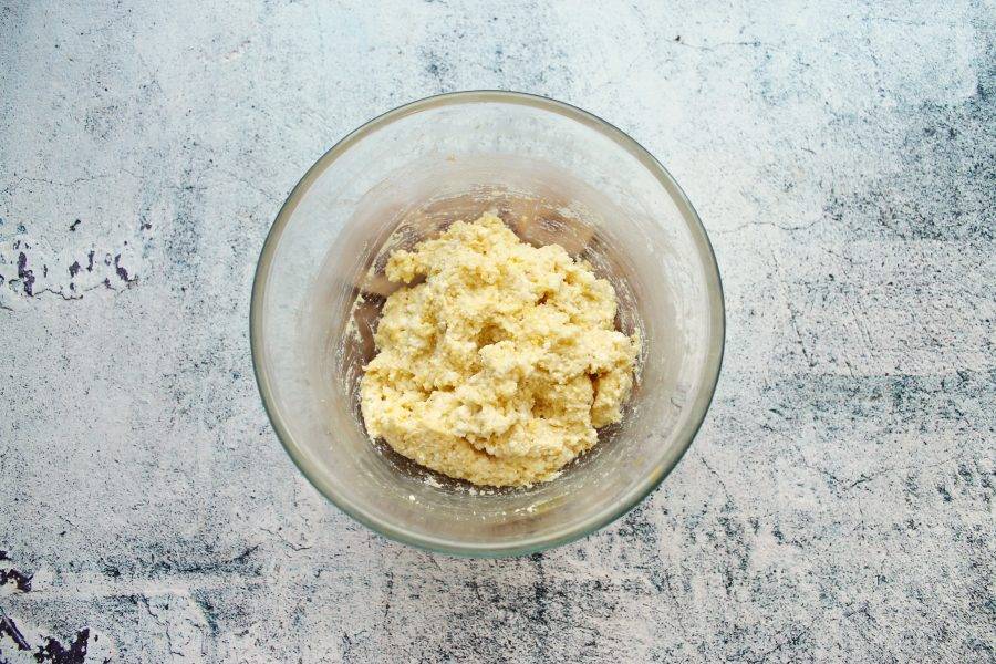 Все хорошо перемешайте до однородного теста. Оставьте на кухонном столе на 10 минут.