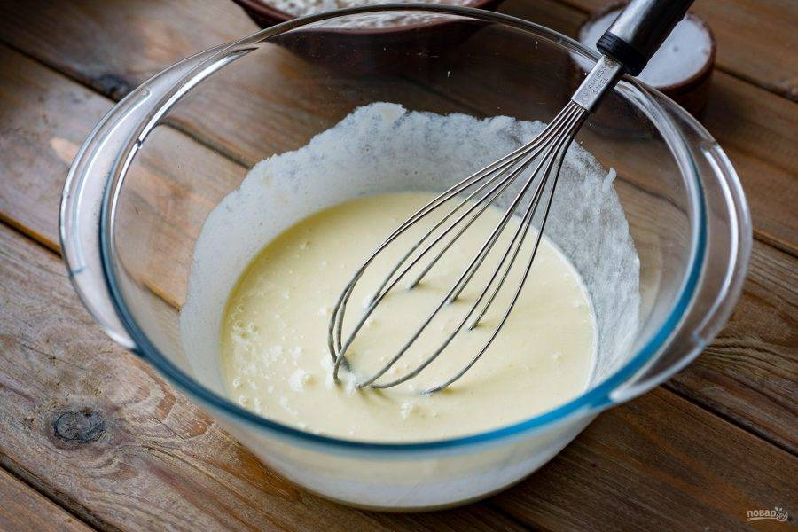 Венчиком перемешайте эти ингредиенты до получения однородной смеси.
