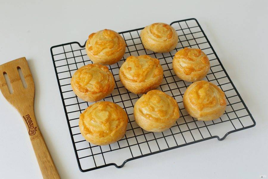 Сырные булочки с творогом готовы. Остудите их на решетке и подавайте к столу.