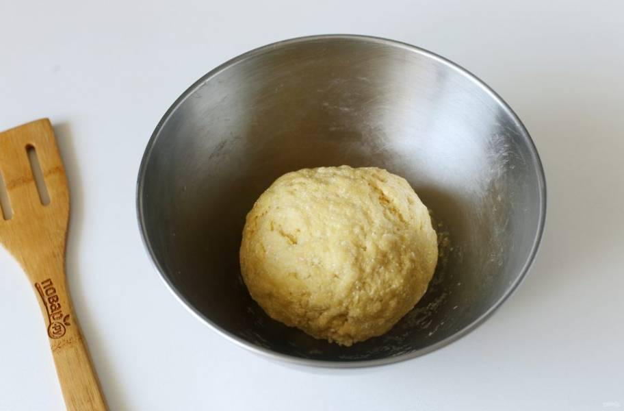 Замесите мягкое тесто, соберите его в шар, миску накройте и оставьте на 20 минут.