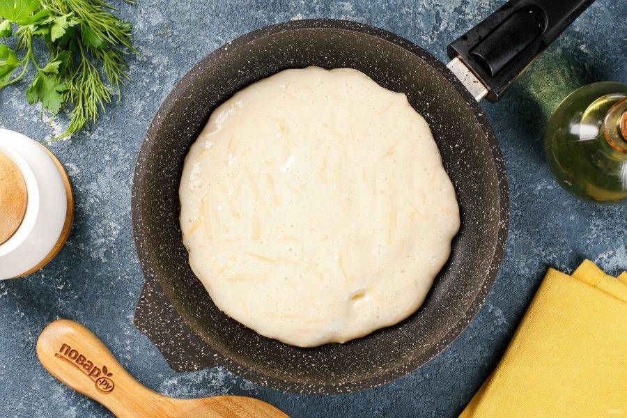 Разогрейте сковороду и смажьте маслом. Налейте на сковороду 1-2 половника теста и разровняйте, придавая форму круга. Размер и толщину лепёшек можете регулировать на свой вкус.