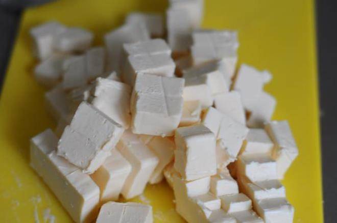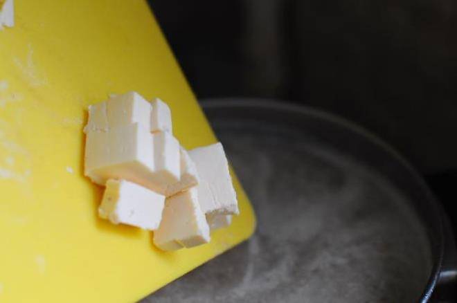 Измельчите блендером готовые овощи, добавьте сыр и поставьте на огонь.