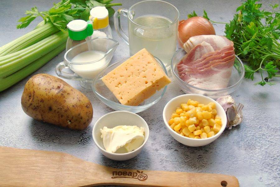 Предлагаю рецепт американского супа-похлебки. Есть много рецептов его приготовления, но у меня один из самых простых. Бекон, кукуруза, сельдерей, сыр и овощи, сдобренные сливками — это суп "Чаудер".