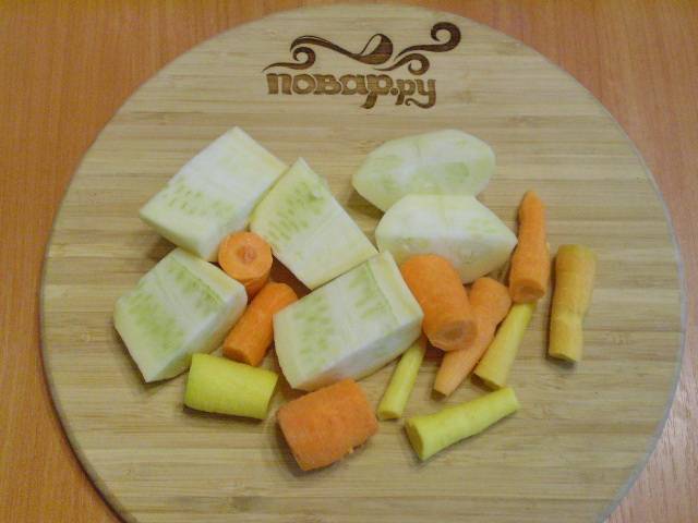 Подготовим овощи: все тщательно вымоем. С кабачка необходимо снять кожуру. Морковь — почистить.