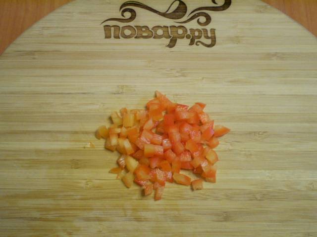 Перелейте в тарелочку суп. Добавьте уксус или сок лимона, перец черный молотый и кусочки болгарского перца.