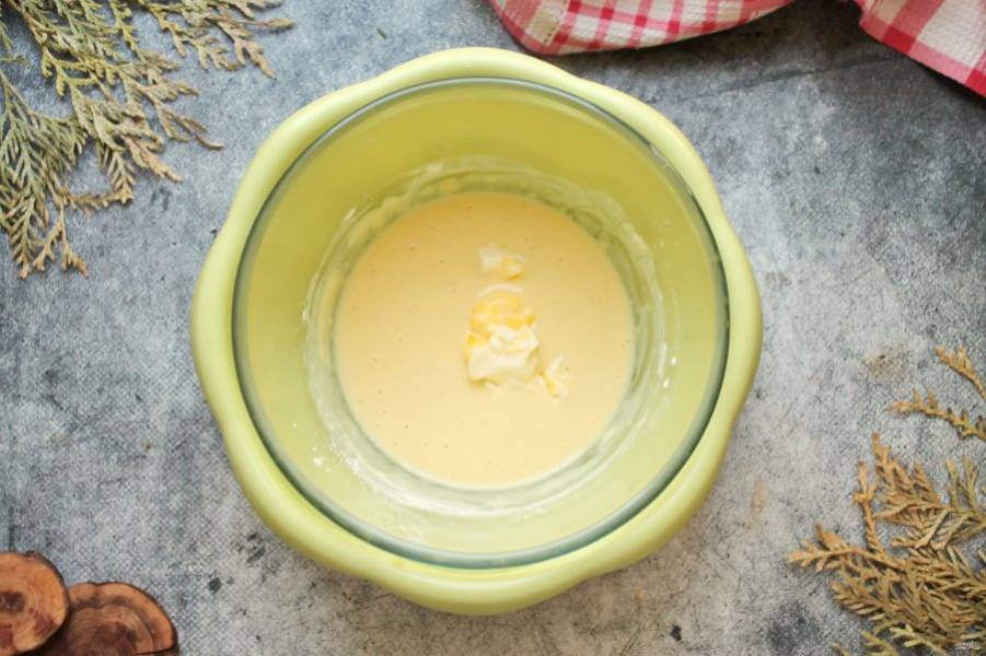 В миску влейте ледяную воду, добавьте соль, яйцо, муку и перемешайте до однородности. Добавьте майонез и перемешайте. Тесто должно быть как на оладьи.