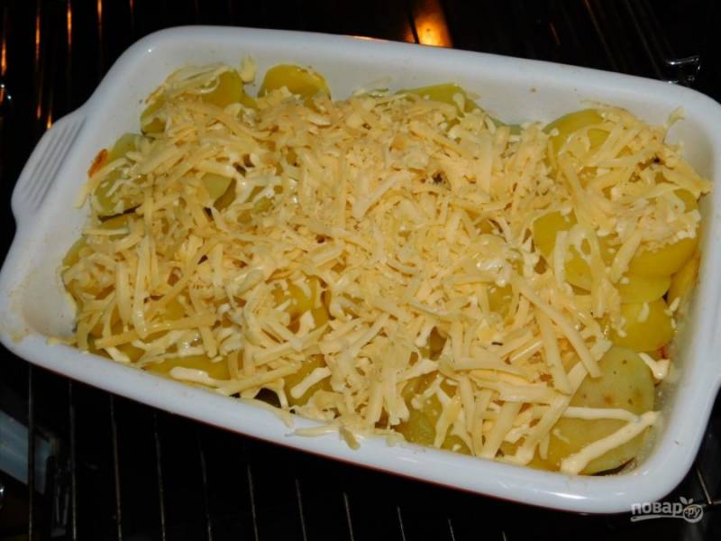 Затем фольгу снимите, посыпьте запеканку тертым сыром и оставьте в духовке еще минут на 20-30.