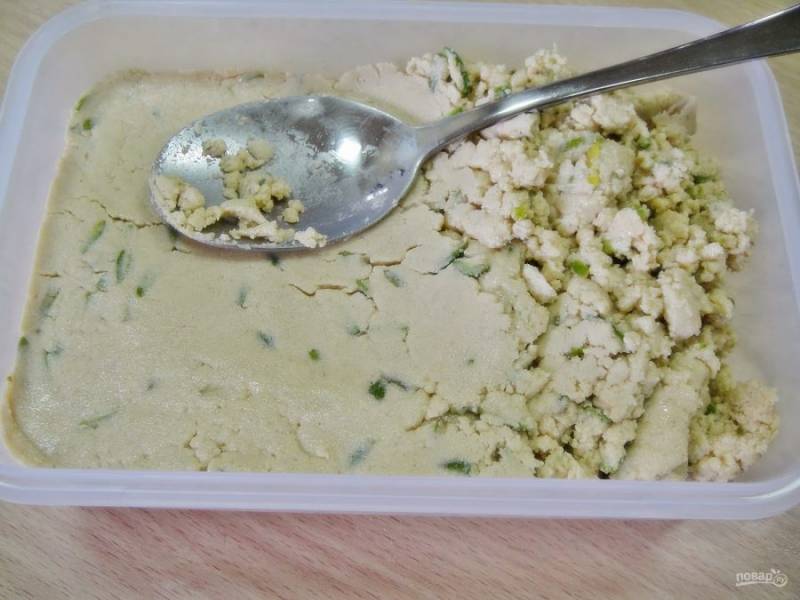 4. Переложите смесь в пластиковый контейнер и утрамбуйте ее ложкой.