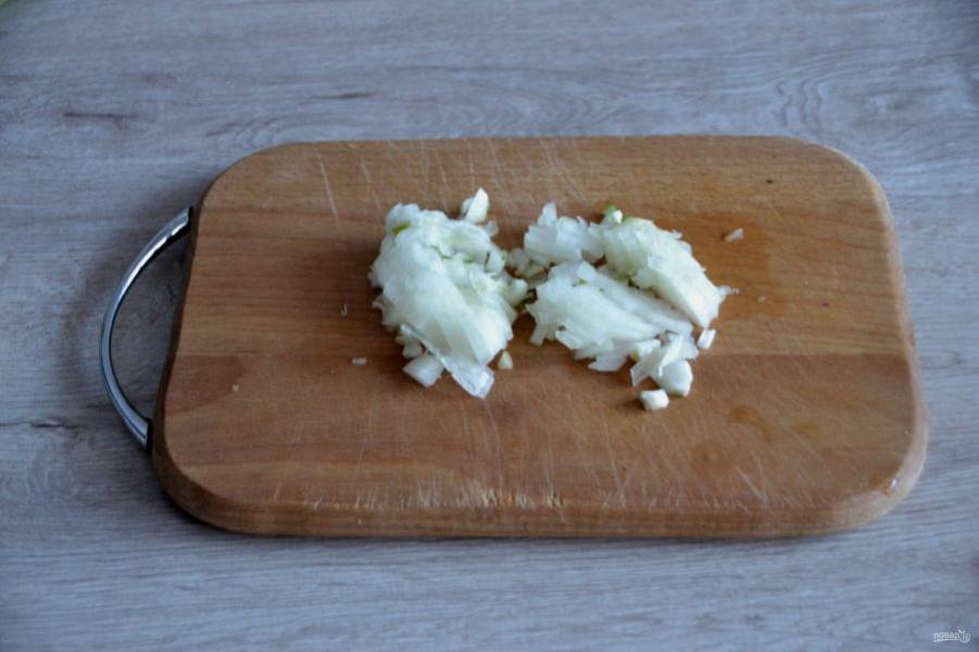 Для приготовления соуса мелко нарежьте репчатый лук.