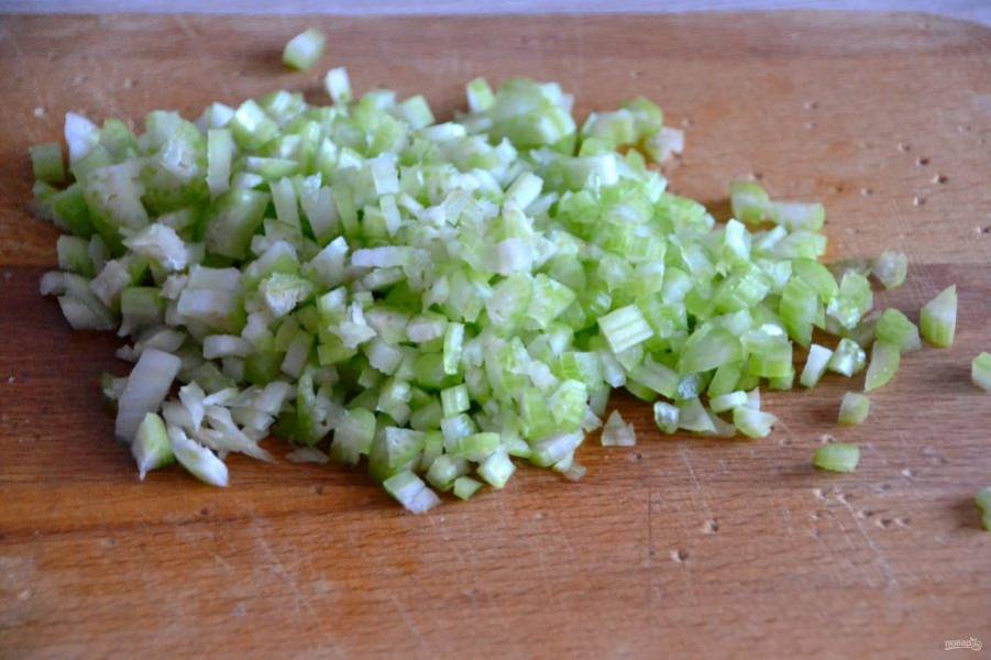 Мелко нарежьте черешковый сельдерей.