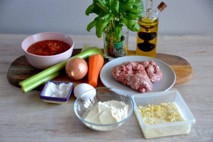 - Масло оливковое 4 ст. ложки 1 ст. ложка — в тесто, 3 ст. ложки — для соуса "болоньезе"