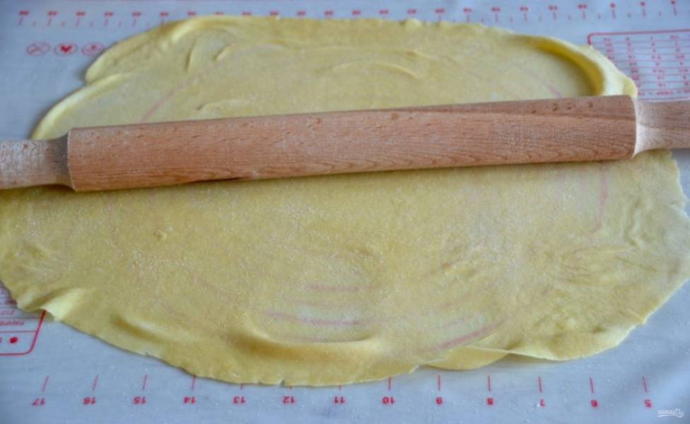 Раскатайте тесто как можно тоньше.