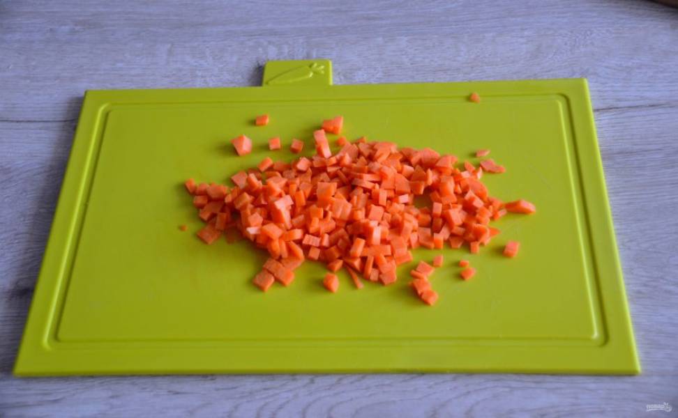 Мелко нарежьте морковь.