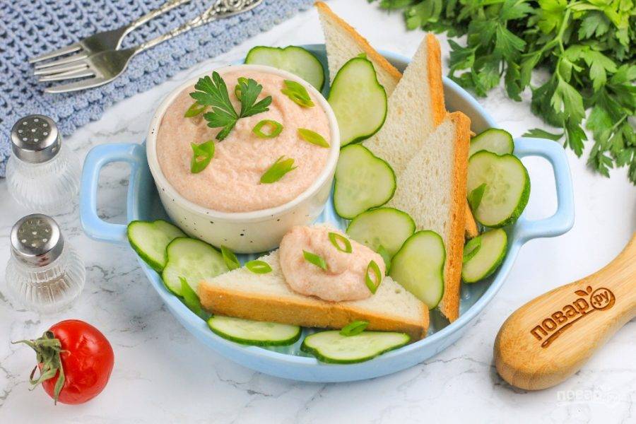 Выложите закуску в пиалу или креманку и охладите в холодильнике перед подачей. Впрочем, тарамасалату можно есть сразу же после приготовления, подавая с хлебной нарезкой и измельченной зеленью, нарезкой огурцов, помидоров. Приятного вам аппетита!