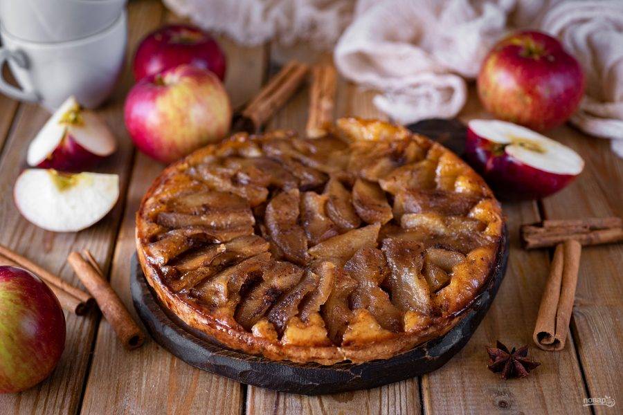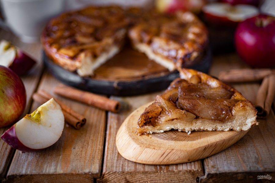 Рассыпчатая песочная основа, начинка из яблок в карамельном соусе — это невероятно удачное гастрономическое сочетание. Приготовьте яблочный тарт и подайте его к столу с шариком мороженного.