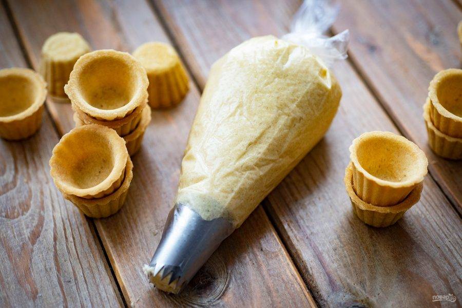 Затем охлажденным франжипаном заполните кондитерский мешок с любимой насадкой.