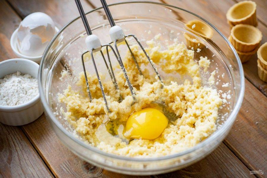 Вбейте яйцо и на маленьких оборотах миксера вмешайте его до полного соединения.
