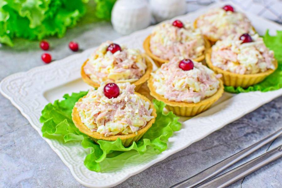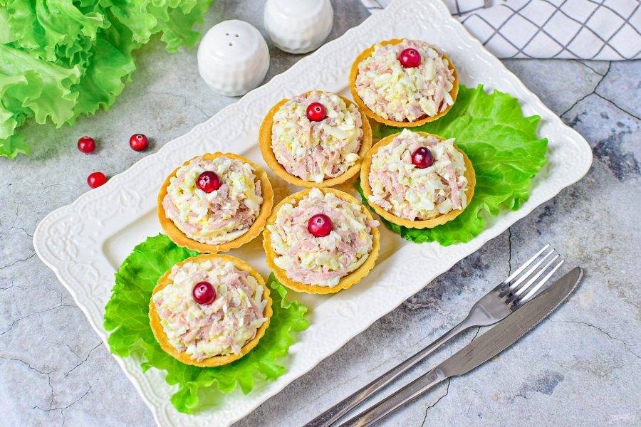 Тарталетки с ветчиной готовы!