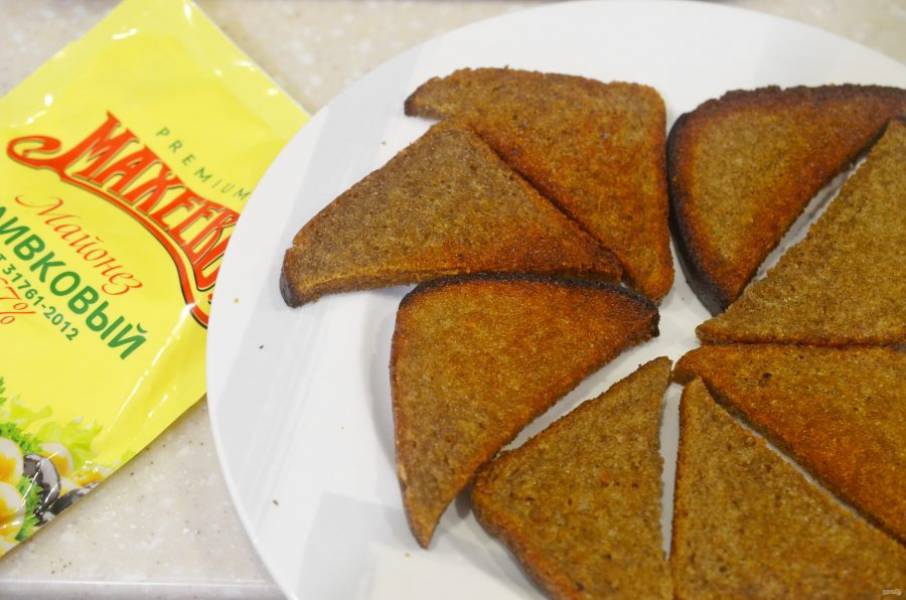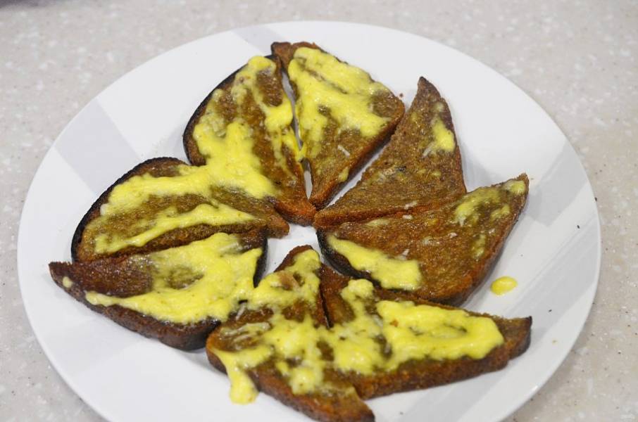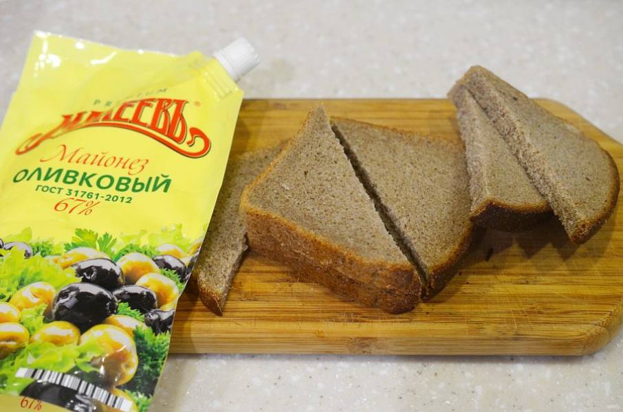 5. Полученной смесью намажьте кусочки хлеба и дождитесь, пока масса частично впитается.