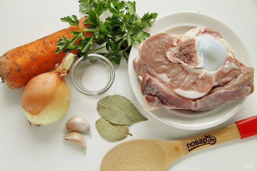 Мясо промойте под проточной водой, поместите в кастрюлю и залейте холодной водой. Как закипит, воду слейте и снова залейте его водой. После закипания убавьте огонь и варите мясо до готовности, периодически снимая образовавшуюся пенку.