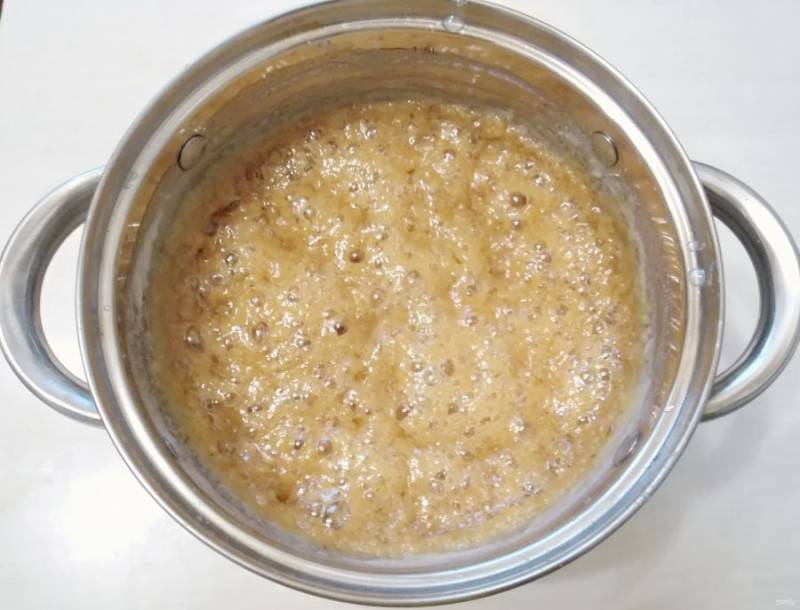 Масса готова когда станет цвета топленого молока и при опускании в холодную воду будет образовывать плотный шарик.