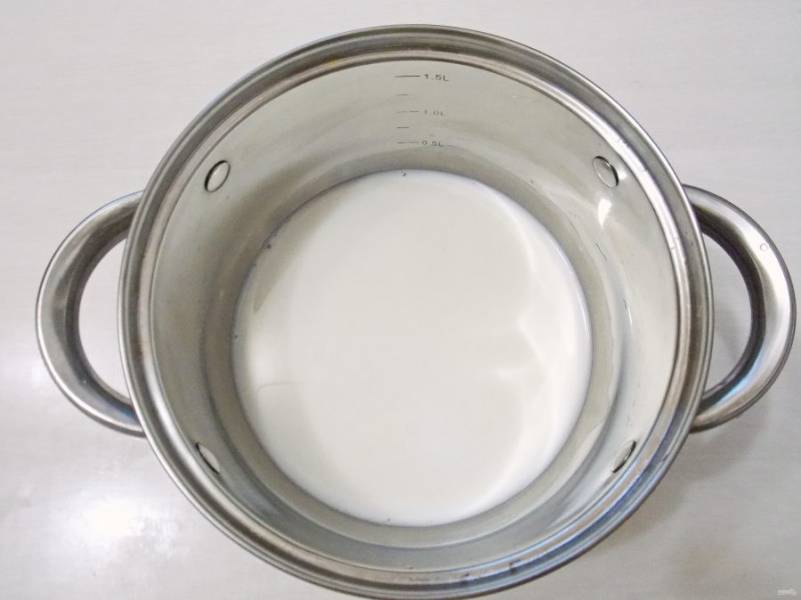 Налейте молоко в кастрюлю с толстым дном и высокими стенками. Поставьте на средний огонь и доведите до кипения.