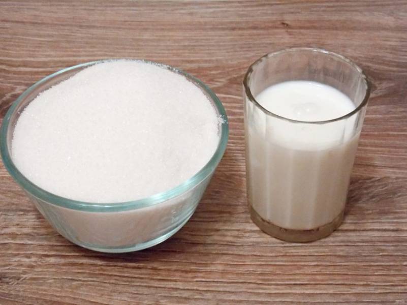 Подготовьте молоко и сахар.