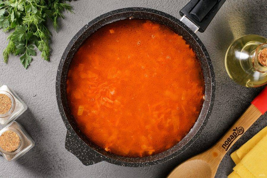 Добавьте томатную пасту и готовьте ещё пару минут.