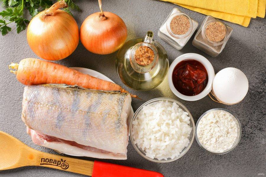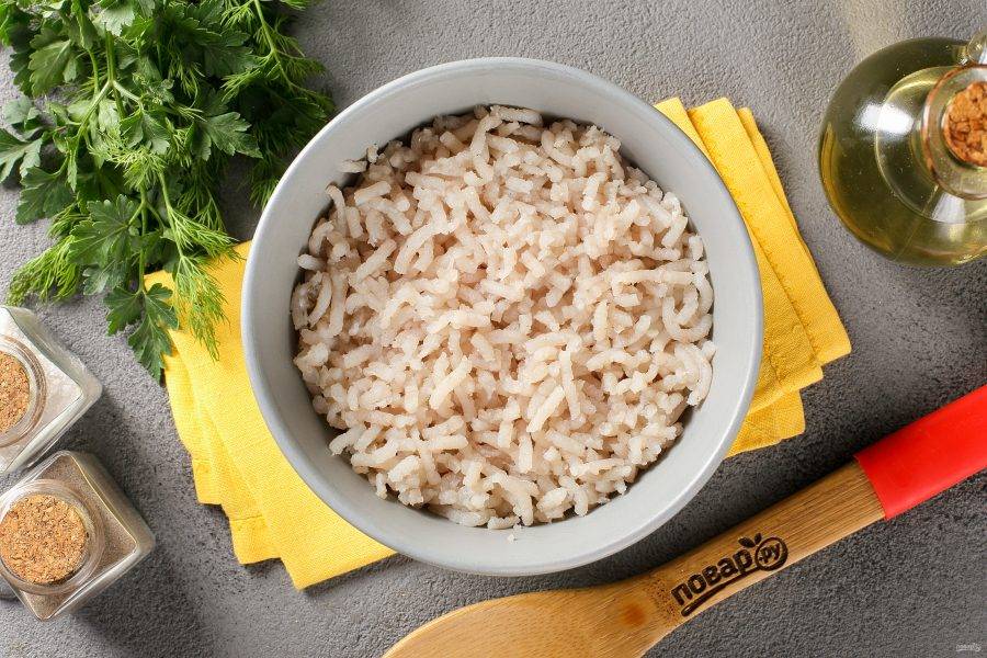 Подготовьте все ингредиенты. Рис предварительно отварите до полуготовности в подсоленной воде.