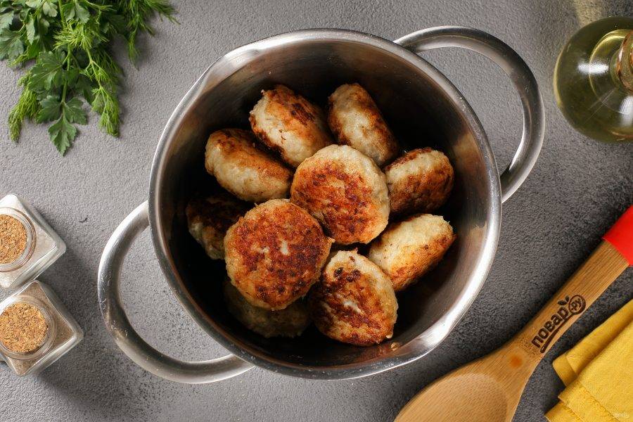 Хорошо всё перемешайте. Если фарш жидковат, можно добавить 1-2 ст.л. муки или сухарей.