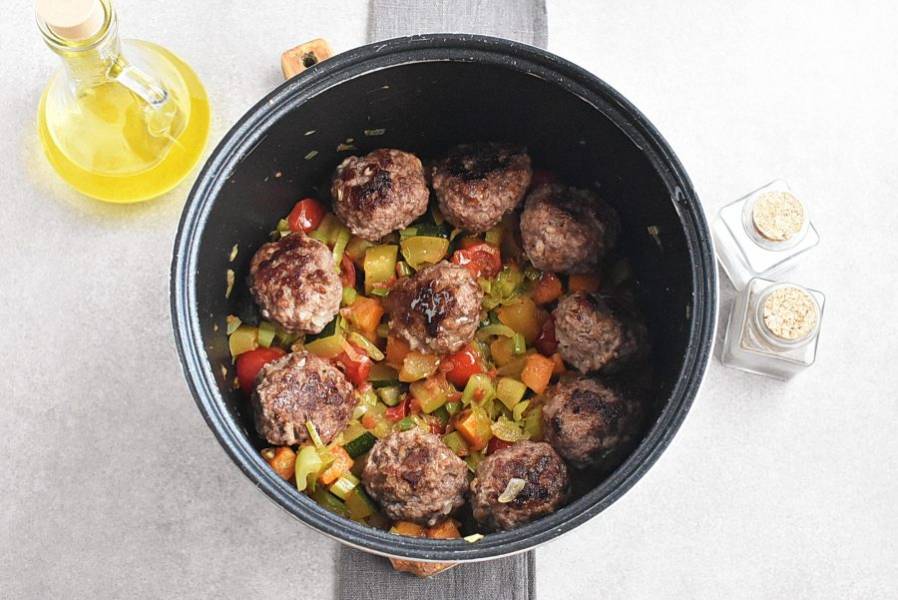 В режиме жарка обжарьте тефтели на масле с двух сторон. Выложите на тарелку.