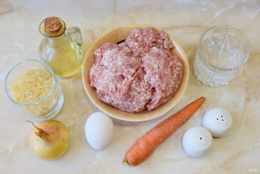 Перед началом приготовления подготовьте все ингредиенты. Фарш можно взять из любого вида мяса.