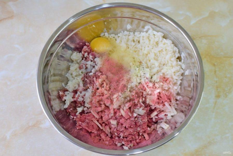 Для приготовления тефтелей подготовьте необходимые ингредиенты. Рис берите отварной.