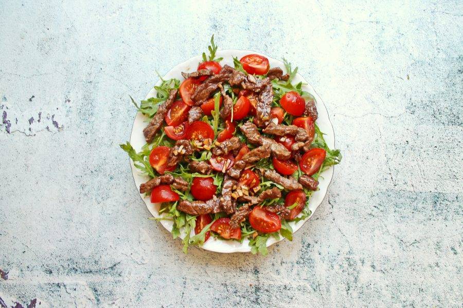 Теплый салат из рукколы и говядины